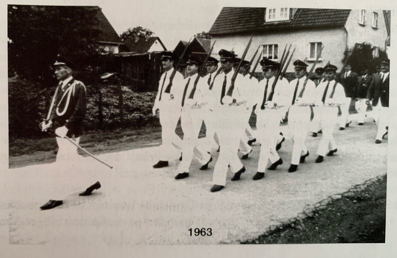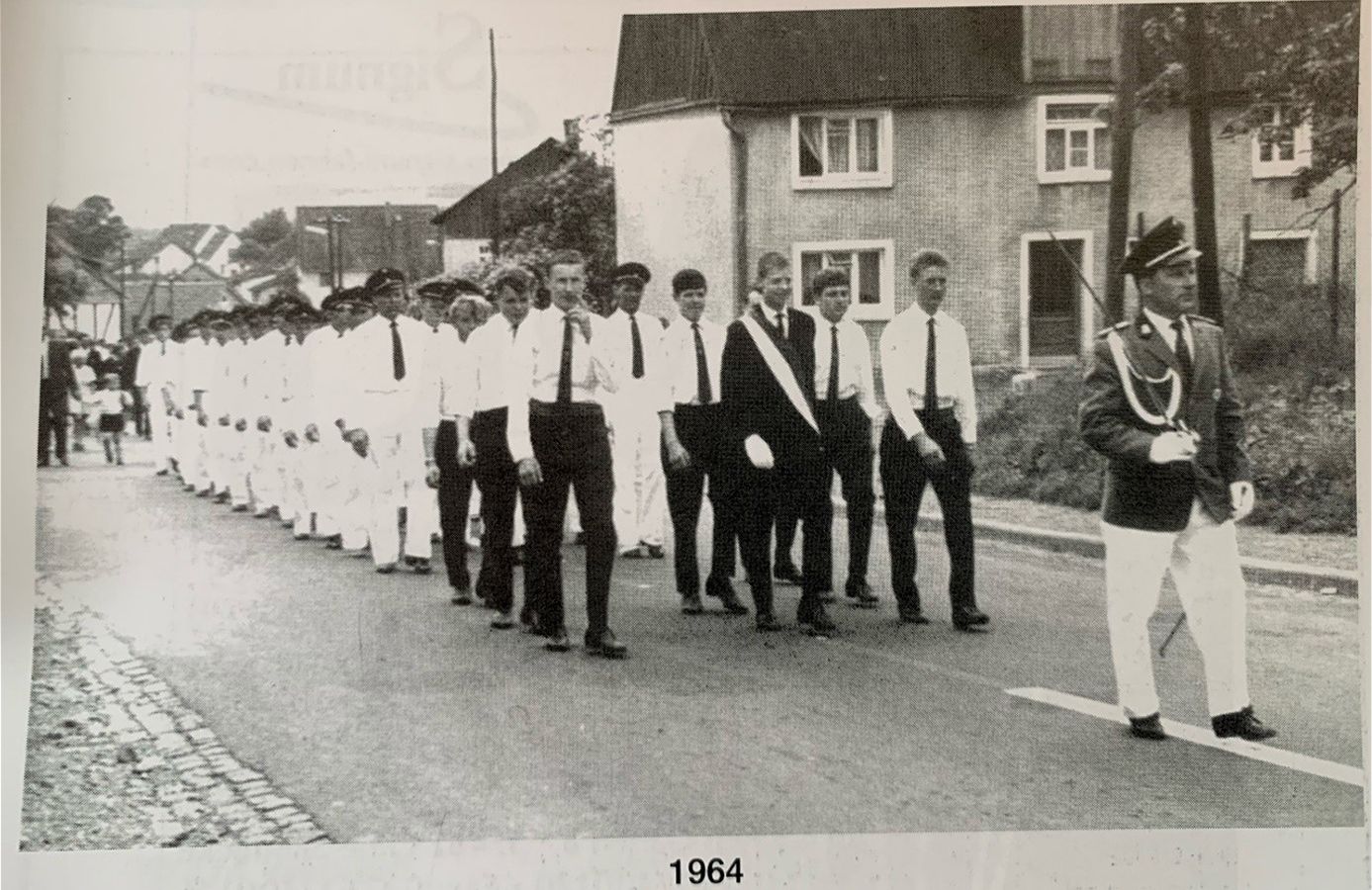 Ca. 11 Jahre nach Gründung: Im Vordergrund mit Uniform Jungschützenmeister Hermann Fischer, dahinter der erste Jungschützenkönig (Prinz) unserer Bruderschaft, Gisbert Schneider